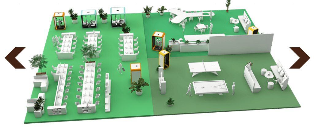 Meeting room, phone booth, break corner, brainstorm room, interview room
