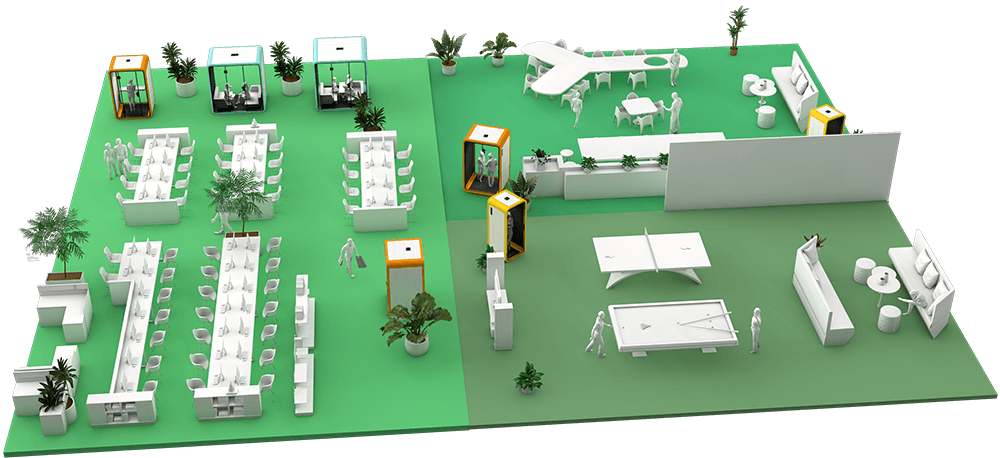 Meeting room, phone booth, break corner, brainstorm room, interview room